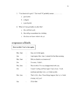 Jim : I apologize, Mrs. Jone. I missed the bus this morning.