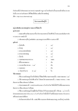 . ดาํ เนินการเช่นเดียวกบั ขอ้ แต่จะใชส้ ารละลายผงซกั ฟอกและแชมพู แทนนาํ สบู่ ตามลาํ ดบั