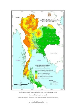 แผนทีภ่ ยั พิบัติแผน่ ดินไหวของประเทศไทยในคาบ 50 ปี (นบั ถงึ เดอื นตลุ าคม 2556) (ภาพจากเวบ็ ไซต์ กรมทรัพยากรธรณี) http://ns1.dmr.go.th/images/article/freetemp/article_20140507091744.png ชดุ วชิ าการเรยี นรสู้ ้ภู ยั ธรรมชาติ 2 - 119