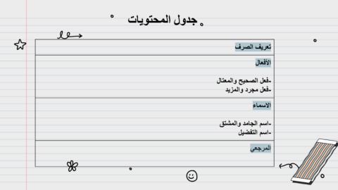 تﺎﯾوﺗﺣﻣﻟا لودﺟ فرﺻﻟا فﯾرﻌﺗ لﺎﻌﻓﻷا لﺎﺗﻌﻣﻟاو ﺢﯾﺣﺻﻟا لﻌﻓ- دﯾزﻣﻟاو درﺟﻣ لﻌﻓ- ءﺎﻣﺳﻻا قﺗﺷﻣﻟاو دﻣﺎﺟﻟا مﺳا- لﯾﺿﻔﺗﻟا مﺳا- ﻲﻌﺟرﻣﻟا