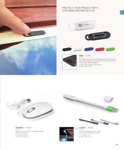 Optical mouse with 0.70 m retractable cable Silicone portable lamp with 4 LEDs,