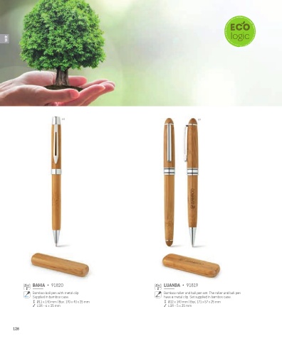 Bamboo ball pen with metal clip. Bamboo roller and ball pen set. The roller and ball pen