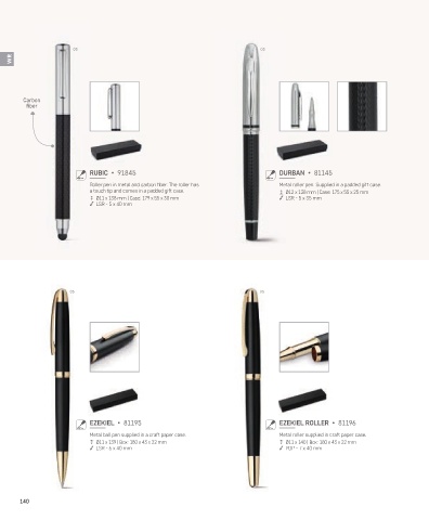 Metal ball pen supplied in a craft paper case. Metal roller supplied in craft paper case.