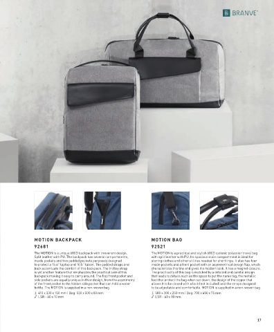 The MOTION is a unique 600D backpack with irreverent design. The MOTION is a practical and stylish 600D cationic polyester travel bag