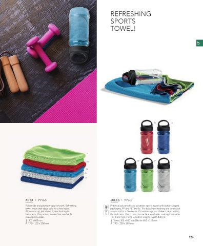 towel when wet stays cold for a few hours. packaging. PP and PET bottle. The towel is refreshing and when wet