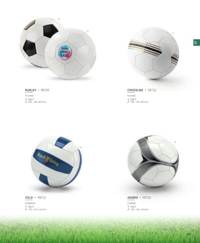 03 06 17 LT RUBLEV • 98709 CROSSLINE • 98712 Football. Football. Size 5 Size 5 TRS - 40 x 40 mm TRS - 40 x 40 mm 06 04 VOLEI • 98711 ANDREI • 98710 Volleyball. Football. Size 5 Size 5 TRS - 60 x 35 mm TRS - 40 x 40 mm 235