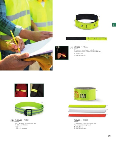 Elastic ref ective polyester band with Fluorescent bracelet with velvet lining.