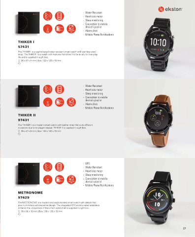 The THIKER I is a sophisticated water resistant smart watch with stainless steel
