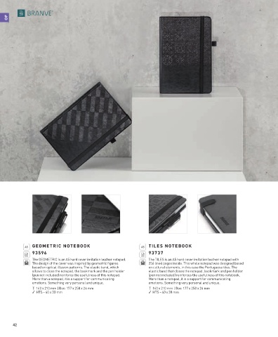 The GEOMETRIC is an A5 hard cover imitation leather notepad. The TILES is an A5 hard cover imitation leather notepad with