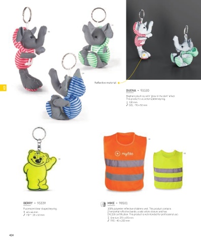 Fluorescent bear shaped keyring. 100% polyester ref ective childrens vest. This product contains