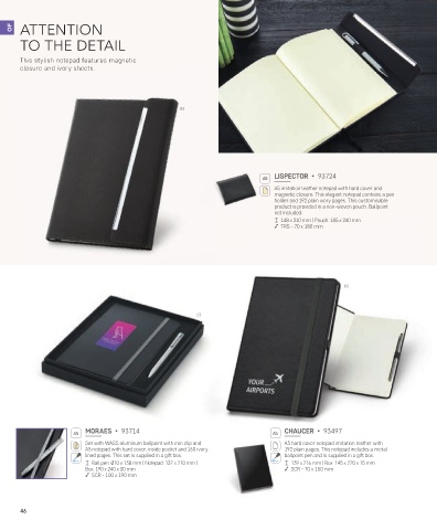 Ball pen: Ø10 x 138 mm | Notepad: 137 x 210 mm | 139 x 216 mm | Box: 145 x 220 x 15 mm