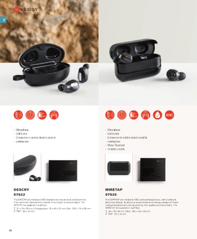 31 x 78 x 38 mm | Charging box: 79 x 40 x 32 mm | Box: 128 x 110 x 58 mm WIRETAP are supplied in a gift box.