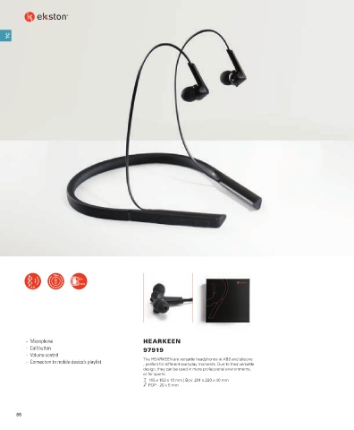 ‐ Connection to mobile device’s playlist The HEARKEEN are versatile headphones in ABS and silicone