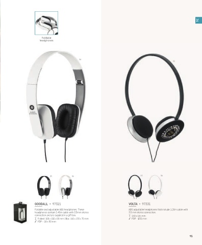 Foldable and adjustable ABS headphones. These ABS adjustable headphones that include 1.20m cable with