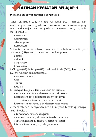 1.Makhluk hidup yang mempunyai kemampuan memecahkan