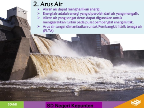 ➢ Energi air adalah energi yang diperoleh dari air yang mengalir.