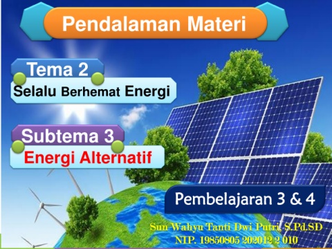 Pendalaman Materi Tema 2 Selalu Berhemat Energi Subtema 3 Energi Alternatif Pembelajaran 3 & 4 Sun Wahyu Tanti Dwi Putri, S.Pd.SD NIP. 19850805 202012 2 010