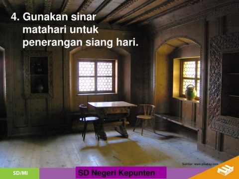 4. Gunakan sinar matahari untuk penerangan siang hari. Sumber: www.pixabay.com SD Negeri Kepunten