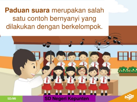 Paduan suara merupakan salah satu contoh bernyanyi yang dilakukan dengan berkelompok. SD Negeri Kepunten