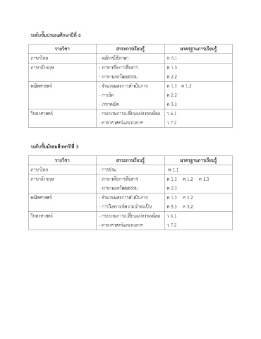 รายวิชา สาระการเรียนรู้ มาตรฐานการเรียนรู้