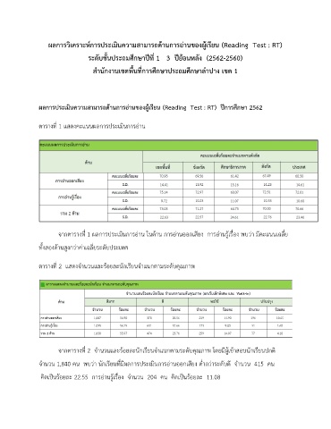 ผลการประเมินความสามารถด้านการอ่านของผู้เรียน (Reading Test : RT) ปีการศึกษา 2562