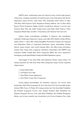 dan Pelatihan Keagamaan Provinsi Aceh. Dengan berdirinya Balai Pendidikan dan