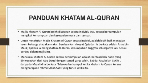 • Majlis Khatam Al-Quran boleh dilakukan secara individu atau secara berkumpulan