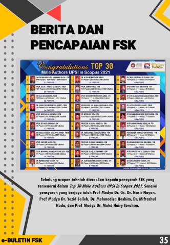 tersenarai dalam Top 30 Male Authors UPSI in Scopus 2021 . Senarai