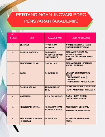 GILIRAN UNIT NAMA INOVASI NAMA PENSYARAH
