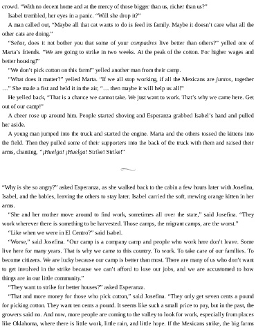 “Why is she so angry?” asked Esperanza, as she walked back to the cabin a few hours later with Josefina,