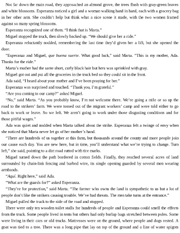 Ada was quiet and nodded when Marta talked about the strike. Esperanza felt a twinge of envy when