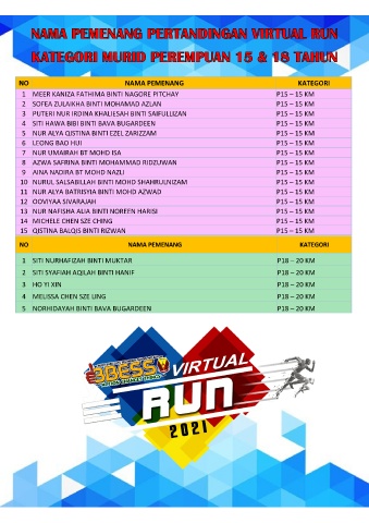 3 PUTERI NUR IRDINA KHALIESAH BINTI SAIFULLIZAN P15 – 15 KM