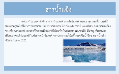 เทือกเขำเซำเทิร์นแอลป์ ในประเทศนิวซีแลนด์ จำกประมำณน ้ำจืดทั งหมดเป็นน ้ำจืดจำกธำรน ้ำแข็ง