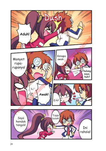 Dush Aduh! Kenapa Monyet awak… rupa- rupanya! Awak yang halang tolak! saya, hah? Awak! Erk? Tidak Saya boleh! hendak tengok! Ini rahsia! 24 24 La Flora Cafe V2_P09-32_CH1_BM.indd 24 19/06/2019 6:11 AM