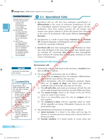 Exam Tips 1. Meristematic cells are cells found in the meristem, a localised tissue