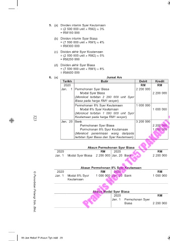 5. (a) Dividen interim Syer Keutamaan Akaun Modal 8% Syer Keutamaan