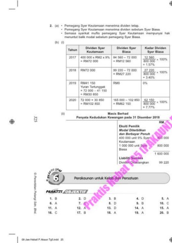 2. (a) • Pemegang Syer Keutamaan menerima dividen tetap. 21. C 22. B 23. B 24. B 25. C