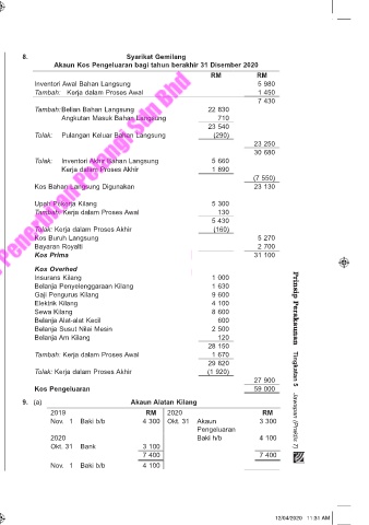Belanja Alat Tulis Kilang 210 Kos Buruh Langsung 5 270
