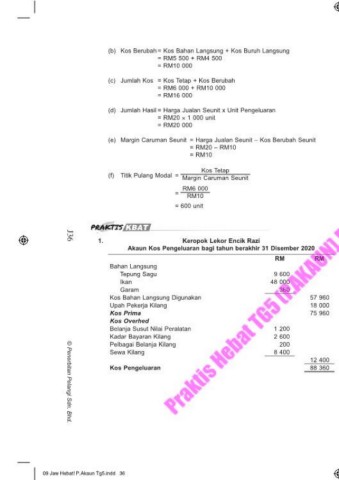 Jumlah Kos = RM20 000 + (8 000 × RM2) = RM36 000 Jawapan (Praktis 7)