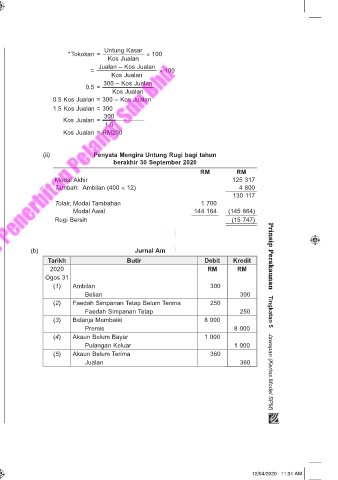 0.2 = × 100 0.5 Kos Jualan = 300 – Kos Jualan