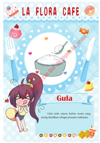 LA FLORA CAFE Gula Gula ialah sejenis hablur manis yang sering dijadikan sebagai pemanis makanan. La Flora Cafe V3_P09-36_CH1_BM.indd 33 20/09/2019 1:05 PM