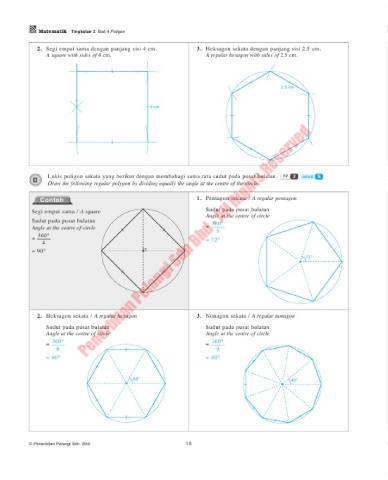 D Lukis poligon sekata yang berikut dengan membahagi sama rata sudut pada pusat bulatan. TP 2 ARAS S