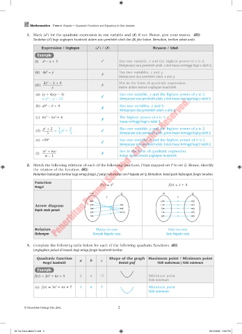 Mathematics Form 4 Chapter 1 Quadratic Functions and Equations in One Variable