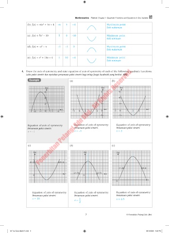 Lukis paksi simetri dan nyatakan persamaan paksi simetri bagi setiap fungsi kuadratik yang berikut. PL 2