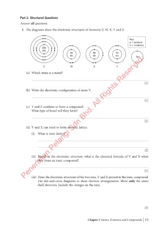 1 The diagrams show the electronic structures of elements V, W, X, Y and Z.