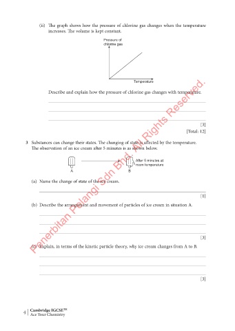 (ii) The graph shows how the pressure of chlorine gas changes when the temperature
