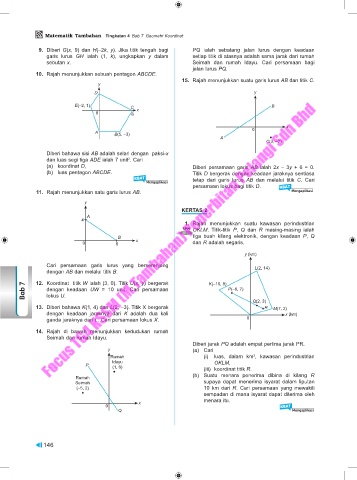 9. Diberi G(x, 9) dan H(–2k, y). Jika titik tengah bagi PQ ialah sebatang jalan lurus dengan keadaan