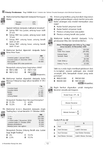 8. Maklumat berikut diperoleh daripada Perniagaan 12. Antara yang berikut, yang manakah digunakan