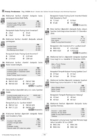 24. Maklumat berikut diambil daripada buku Berapakah Kadar Pusing Ganti Inventori Kedai