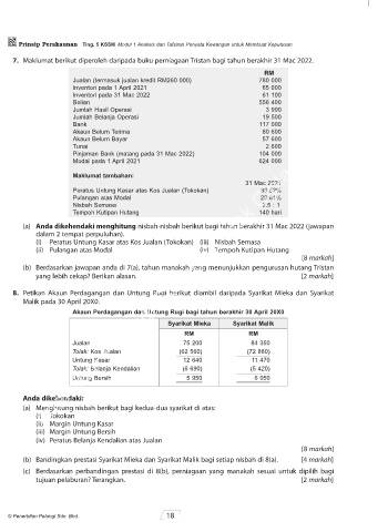 7. Maklumat berikut diperoleh daripada buku perniagaan Tristan bagi tahun berakhir 31 Mac 2022.
